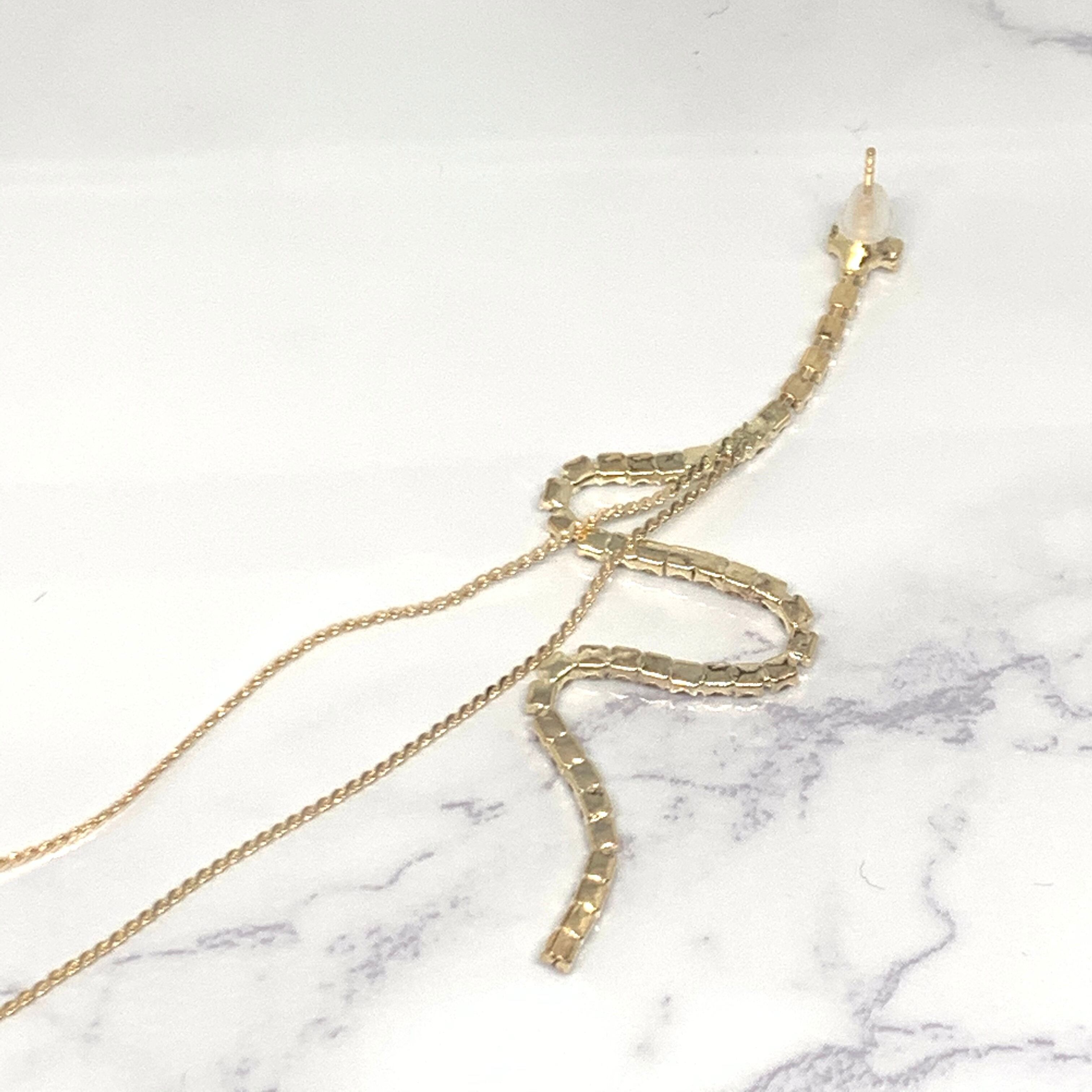 ねじり連爪チェーンのフリンジピアス #005
