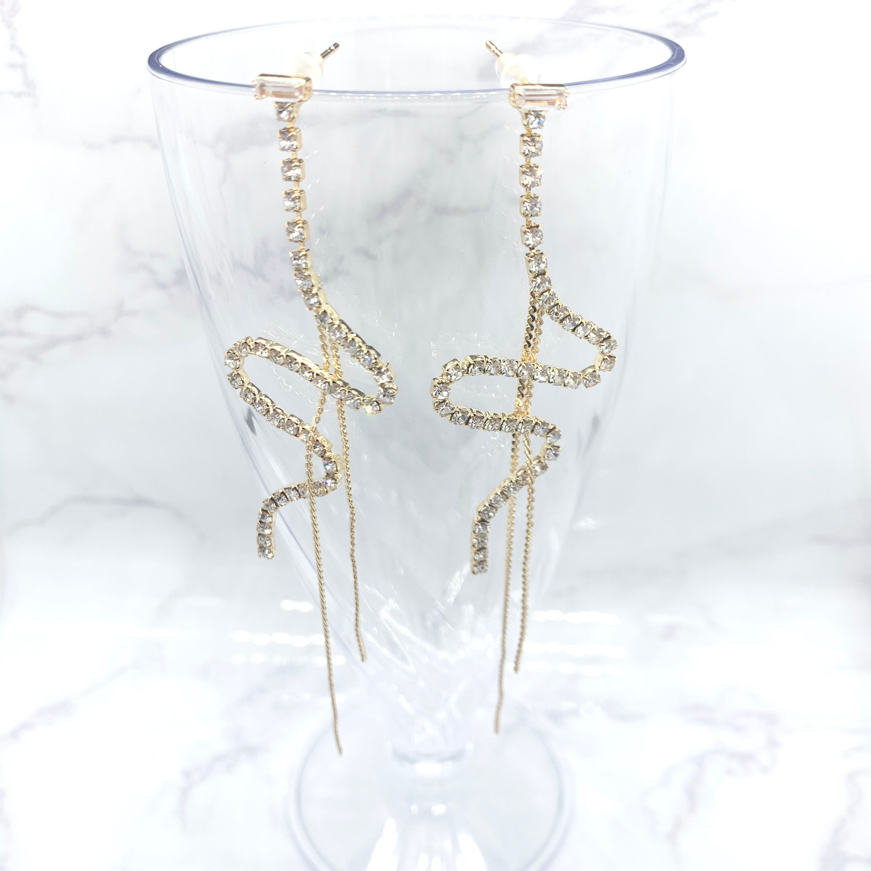 ウェーブラインが特徴の連爪ダイヤチェーンを組み合わせたピアスです。