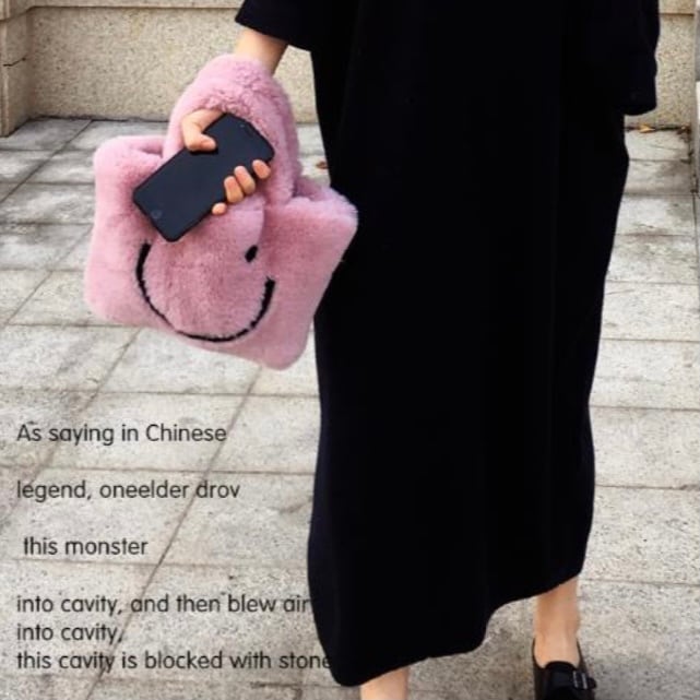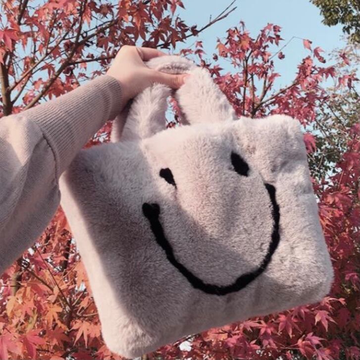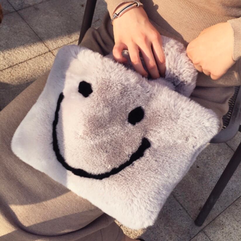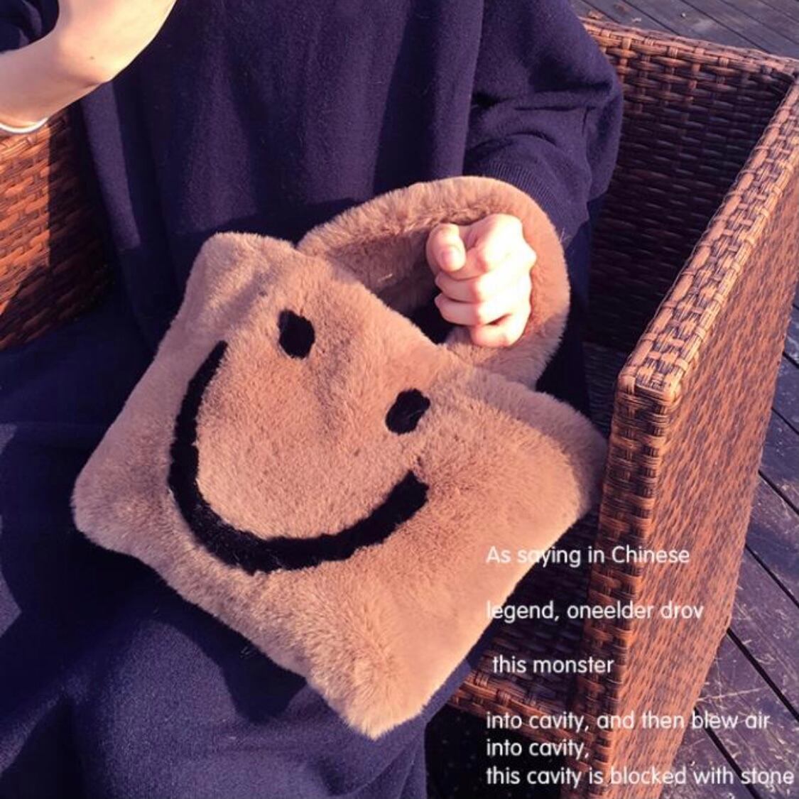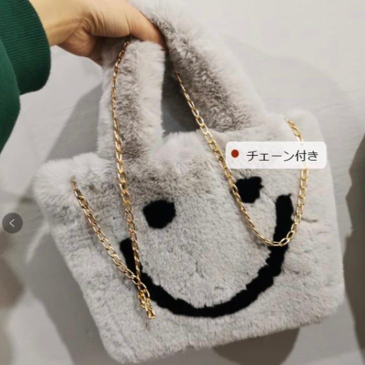 スマイル ニコちゃん ファー ハンドバッグ ショルダー付き 2way