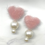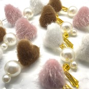 ハートのファーとパールの2wayピアス #009