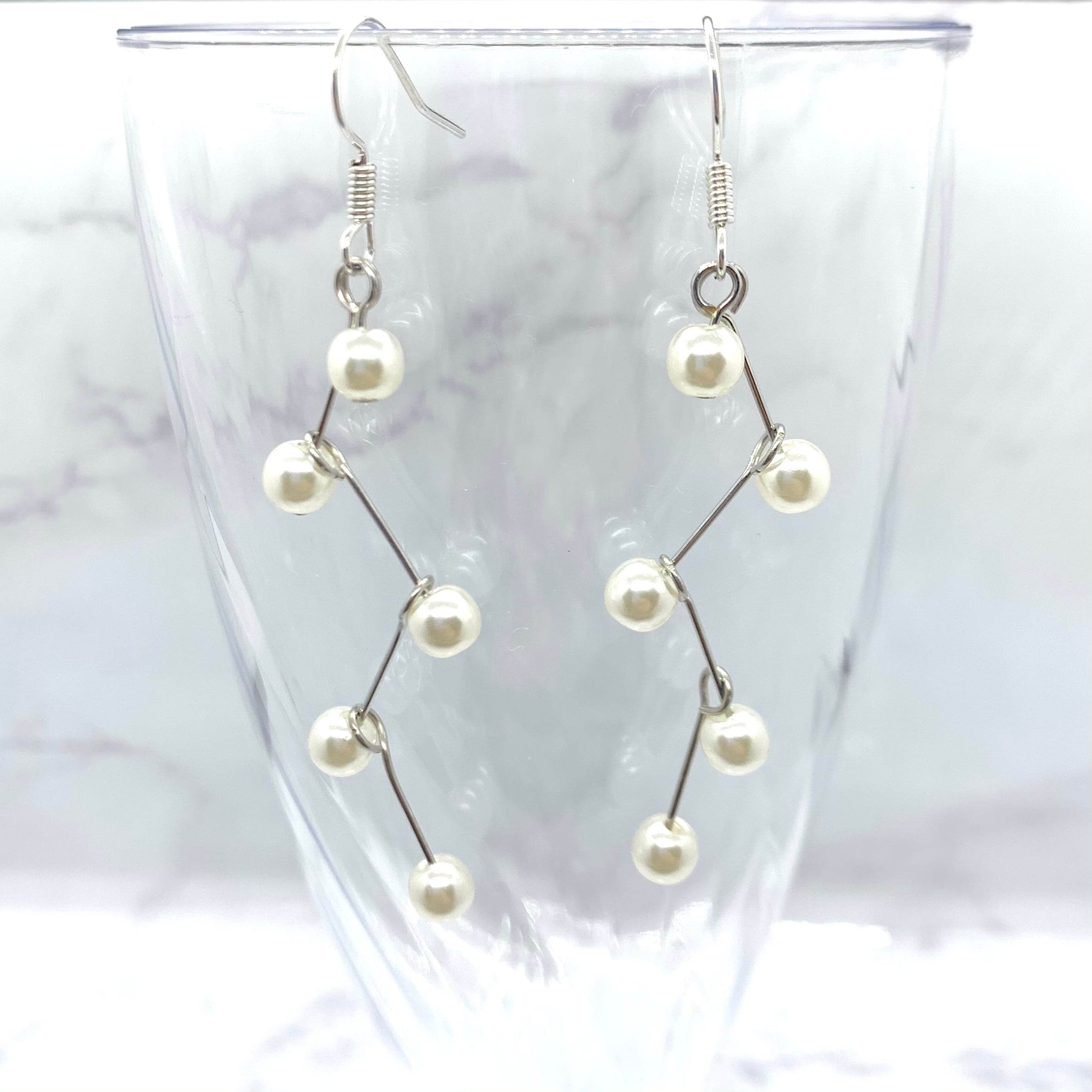 ジグザグに並んだパールが耳元で揺れて動きのある耳元になります。
